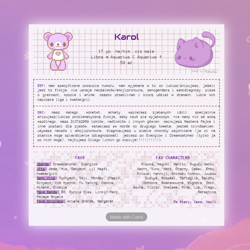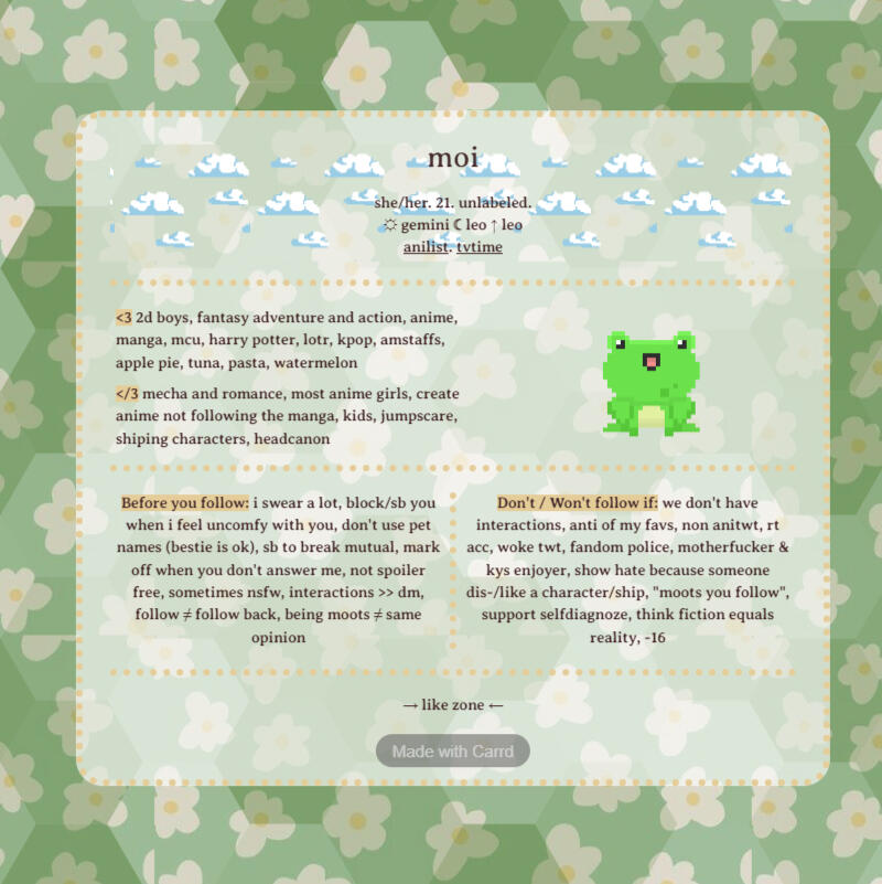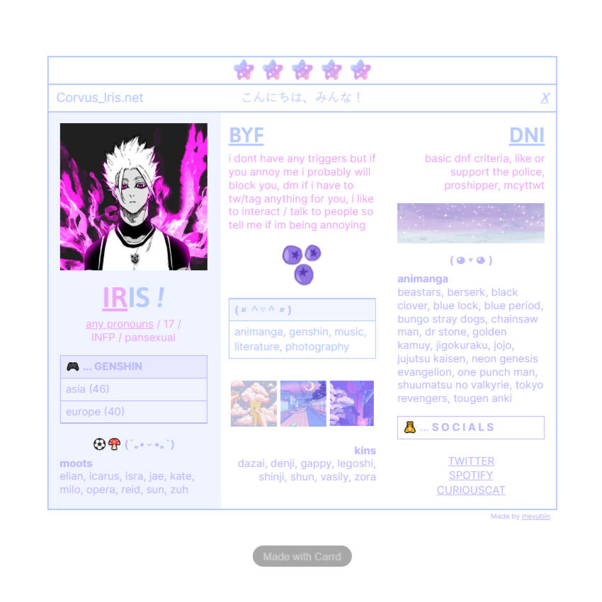 3) I make carrds for everyone, but prefer anitwt and kpop twt