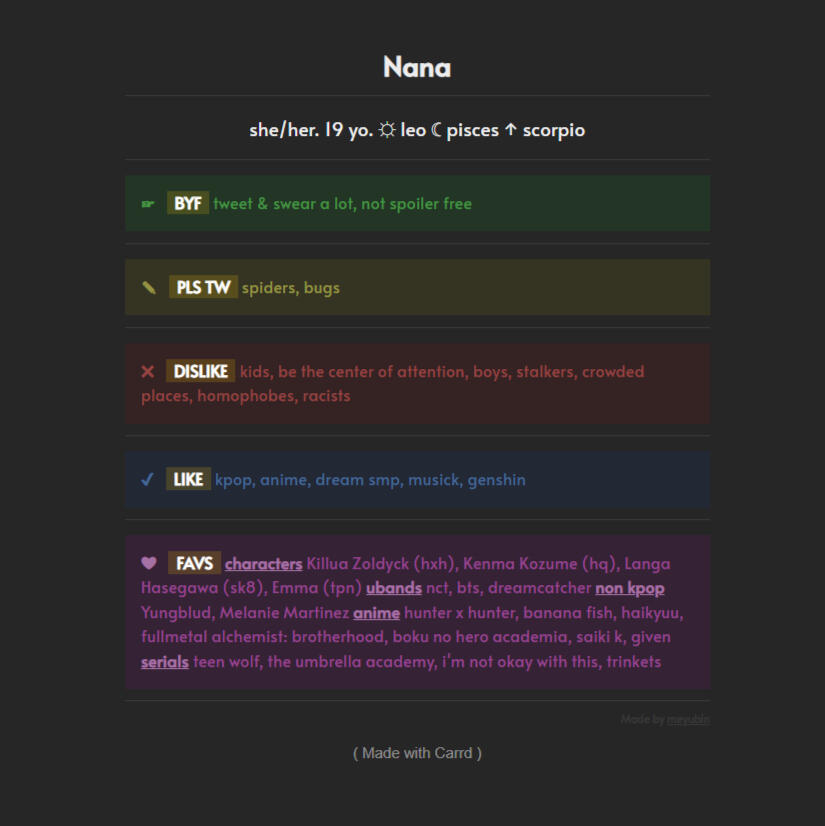5) Prepare: byf, dni, basic info about you, carrd idea/colors, carrd account (verified)